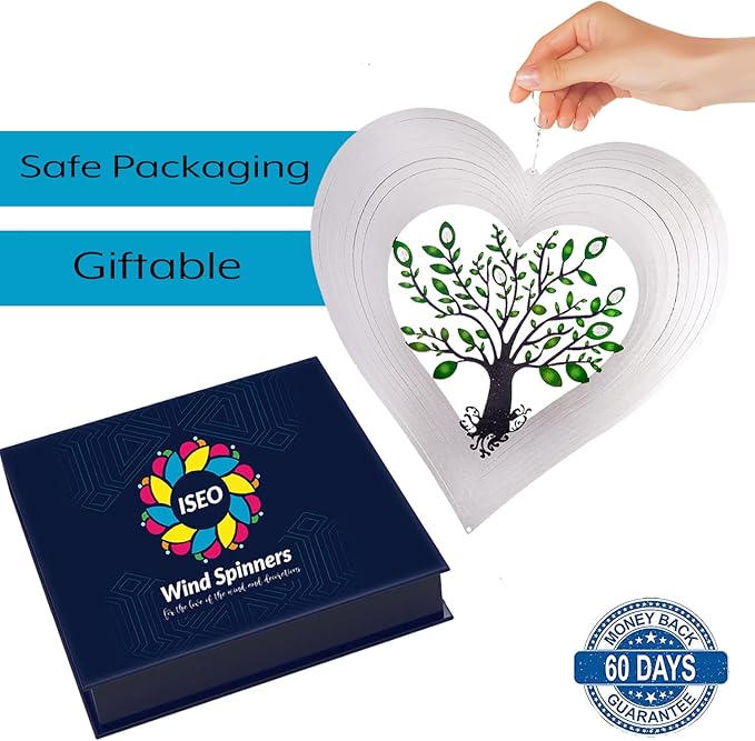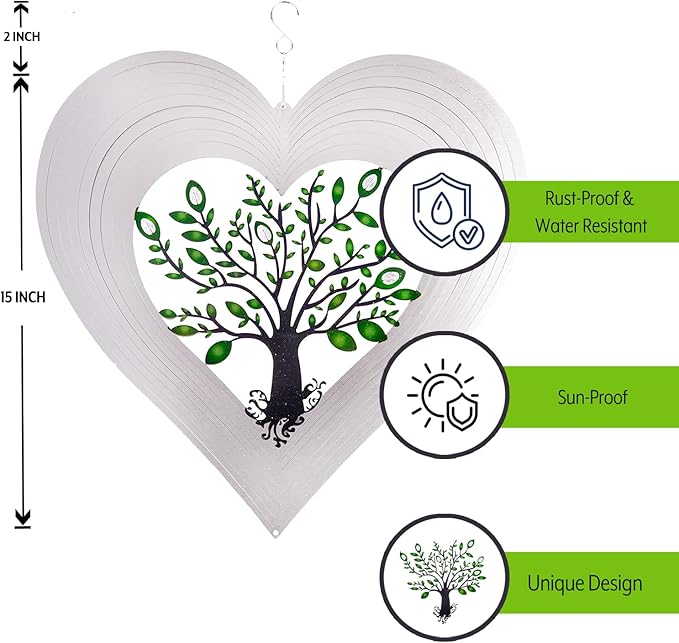 - CHARMING DESIGN: The outdoor wind spinner features a leaf-covered crystal tree of life surrounded by heart-shaped layers that move in breeze for a satisfying and eye-pleasing show dimension and glitter. This garden wind spinner is sure to make your garden stand out!