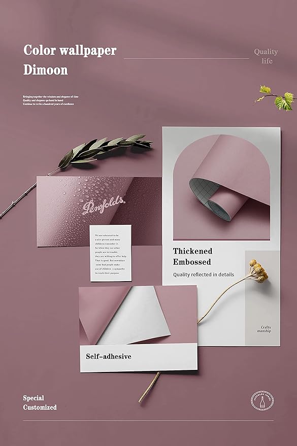 Dimoon 110''x17.7'' Pink Peel and Stick Wallpaper Contact Paper Modern Self Adhesive Wall Paper Removable Renter Friendly Textured Solid Color Shelf Cabinet Vinyl Roll (110''x17.7'',Grey Pink)