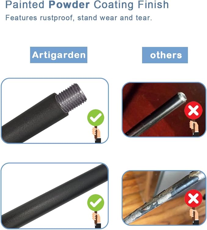 - Elegant Appearance: Artigarden outdoor shepherd hook boasts an exquisite design that appeals to aesthetics. Its classic and elegant shape complements various garden styles and outdoor settings, adding a touch of natural and captivating charm to your space. Please attention: soft soil and hanging overloads may cause the hook to topple over, we don’t recommend hanging heavy objects of over the limit pounds.