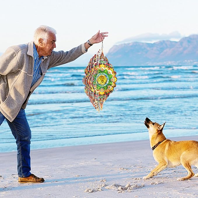 - -【WIDE RANGE OF HOME DÉCOR】Wind spinners can hang on lamps, trees, wall, balcony, window, garden, and etc. It may be used with a power operated motor so you can enjoy indoors or outdoors when there is little wind to twirl the spinner.