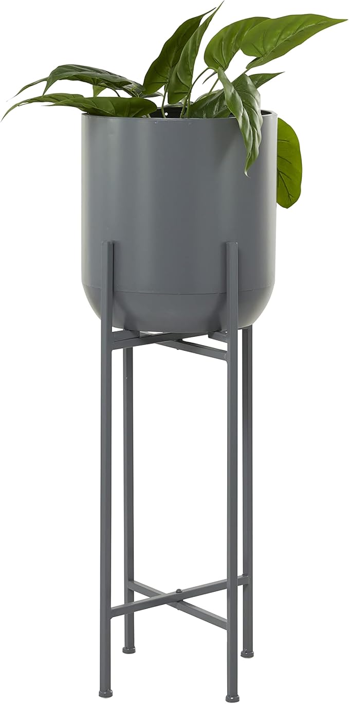 Deco 79 CosmoLiving by Cosmopolitan Metal Round Planter with Removable Stand, 13" x 13" x 36", Dark Gray