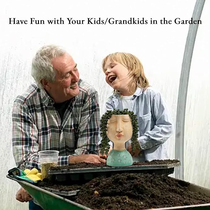 DiliComing Head Planter Face Planter Pots - 8 Inch Indoor Flower Planter Outdoor Planter Succulent Pot Girl Resin Planter with Drainage Hole Planters for Indoor Plants
