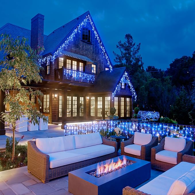 - โIdeal Outdoor Decorations - The led icicle lights are IP44 Waterproof, which can withstand all kinds of weather, ideal for indoor and outdoor decorations. LED Christmas lights are perfect for Christmas, Halloween, Thanksgiving, wedding, party, Valentine's Day and any celebrating time. However, please keep the plug away from water.