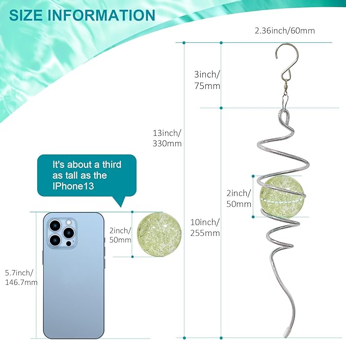 - 【 Enjoy Magic Visual Illusion 】This beautifully clever yet simple gazing ball spiral tail is designed to create a stunning optical illusion. The glass ball appears to float and dance in the air as the magic glass ball spiral tail spins, creating a magical visual illusion that has a calming and relaxing effect on the mind. The Spiral Tail Wind Spinners can reduce anxiety and improve mental focus, making it perfect for creating a relaxing atmosphere in your home, garden or yard.
