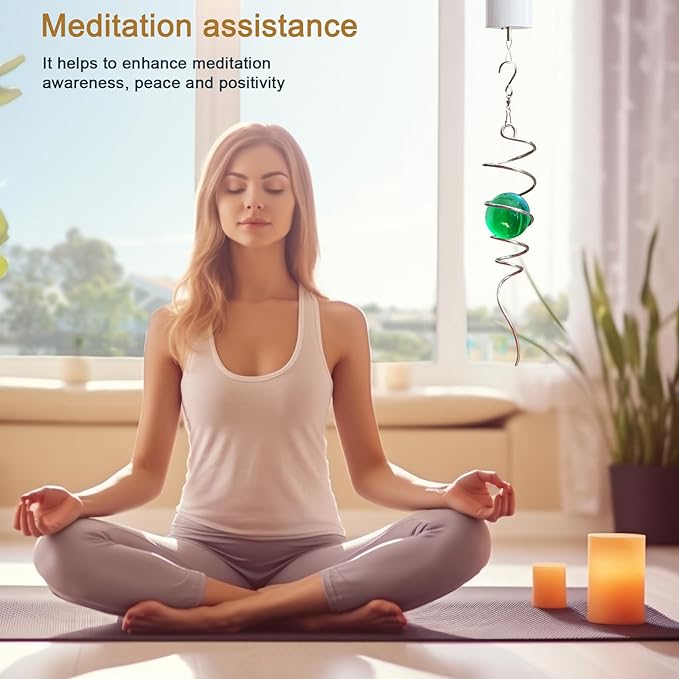 - 【 Enjoy Magic Visual Illusion 】This beautifully clever yet simple gazing ball spiral tail is designed to create a stunning optical illusion. The glass ball appears to float and dance in the air as the magic glass ball spiral tail spins, creating a magical visual illusion that has a calming and relaxing effect on the mind. The Spiral Tail Wind Spinners can reduce anxiety and improve mental focus, making it perfect for creating a relaxing atmosphere in your home, garden or yard.