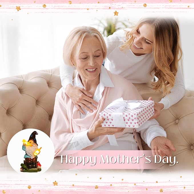 DKJOCKY Funny Garden Gnomes Outdoor, Solar Gnomes with Led Lights Decor for Outside, Gardening Gifts Garden Oranments Outdoor Birthday Gifts for Women Mom Grandma