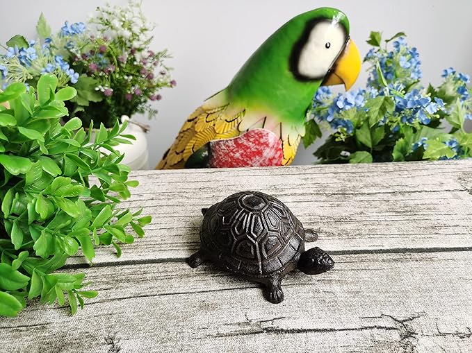 - Overall dimension is about 4.3x3.0x2.0". Rustic garden decorative cast iron turtle is perfect décor for the home or garden,An ideal size to go undercover in the existing bushes, plants, or landscape of your yard or garden.