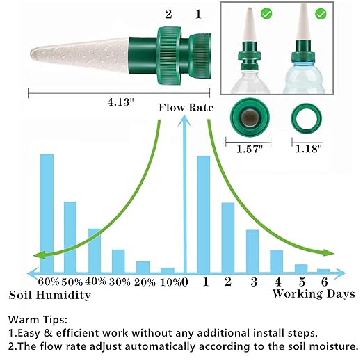 - 5.【What Will You Get】:*Read simple user instructions before use self watering spikes as easily as possible.* Vacation watering for outdoor plants include 6pcs houseplant watering stakes + 6pcs flower papers + 1 X after-sales instruction manual.This drip irrigation plant water made you not only save time & energy,but raise healthier plants to improve the quality of life. If you have any question,just you read user instruction or contact us directly, we will solve it for you asap. Thank you :)