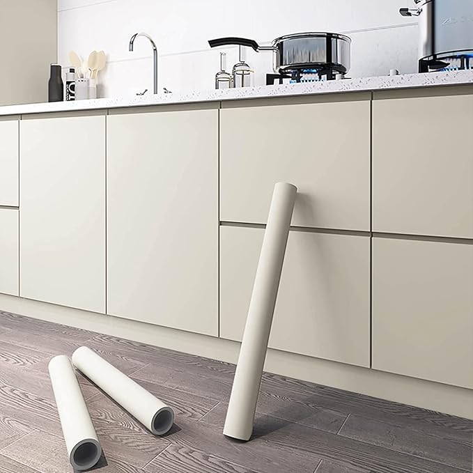 Dimoon 118''x23.6'' Cream Skin Peel and Stick Wallpaper Contact Paper Modern Self Adhesive Wall Paper Removable Renter Friendly Textured Solid Color Cabinet Vinyl Roll (118''x23.6'',Cream Skin)