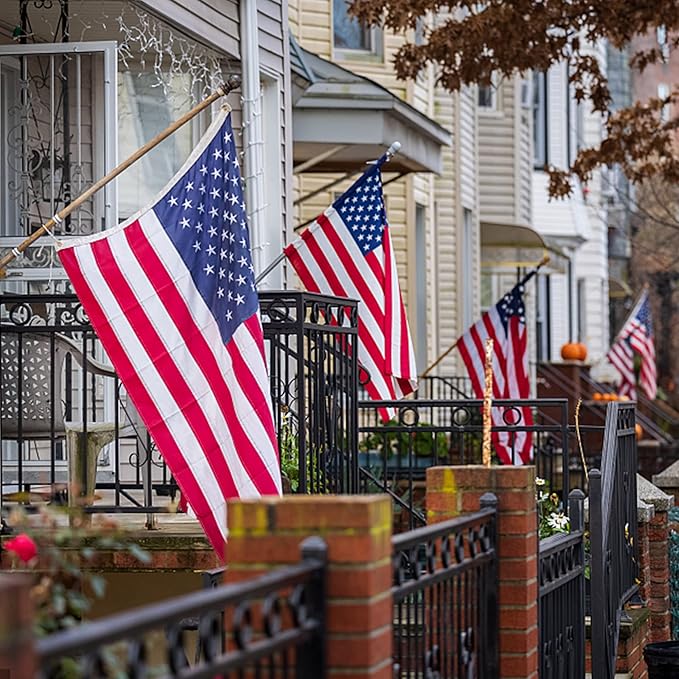 - Elaborate production: The USA flags 5x8 outdoor, luxurious embroidered stars, multi-row sewing on the bottom edge, brass grommets reinforcement , giving buyers peace of mind to use high quality indestructible American flag 5x8 outdoor.