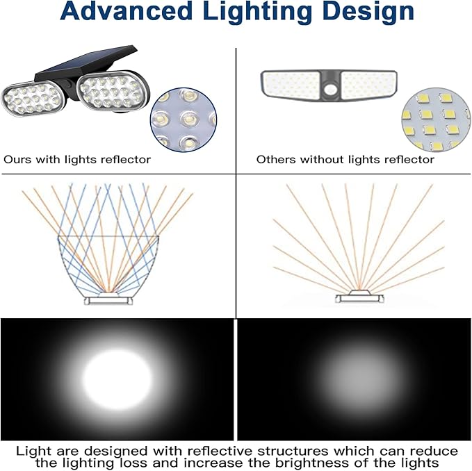 - << Double Heads 210ยฐ Adjustable >> Double heads design of our solar Spot Lights, the lighting area is larger, 210ยฐadjustable no wires to run multicolored solar spotlight, Zero electricity bill.