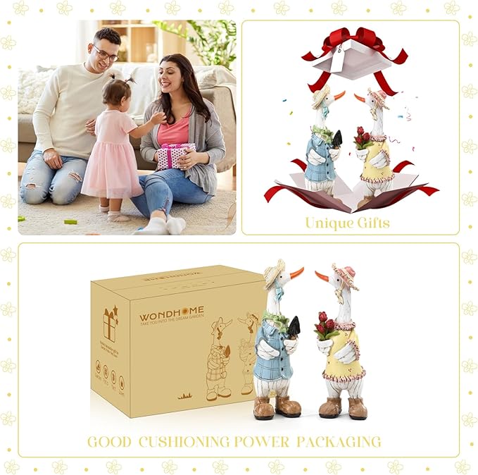 - High-Quality Materials:The couple duck state is handmade,made of a durable resin stone material and eco-friendly paint.It is non-toxic and has no odor,doesn't fade in the sun and water to keep your statue always looking new.