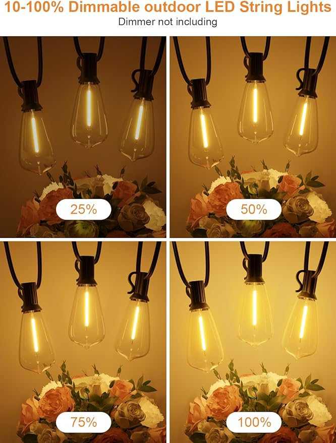 - 【5-100% Brightness Dimmable】whatever for a romantic outside party or patio deck drinks with family, dimming the lights brightness can add to a cozy warm ambience like christmas lights and Gpatio outside lights compatible most dimmer switch.[dimmer is NOT included]