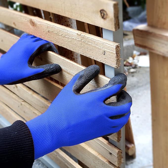 Evridwear Crinkle Latex Rubber Hand Coated Safety Work Gloves for Men Women General Multi Use Construction Warehouse Gardening Assembly Landscaping (Large,Blue- 12Pair)
