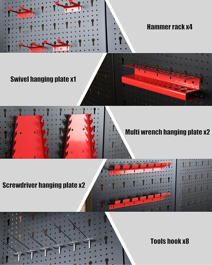 - 【Large Storage】: The pegboard with hook is perfect for hanging gadgets and it is easy to attach and detach. There are shelves at the top and bottom for storing items and boxes.