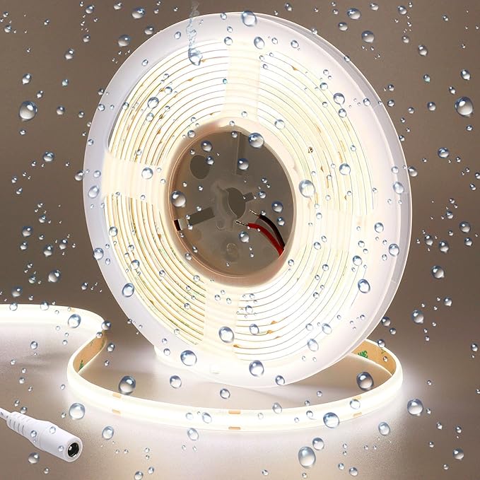 - 【COB LED STRIP】480LEDs/M(3.3ft), 2400LEDs/5M(16.4ft), COB light strips have more dense LED chips, Which make the emitting units nprecedentedly close to each other, and create super even lighting performance. At the same time, it brings higher luminous efficiency