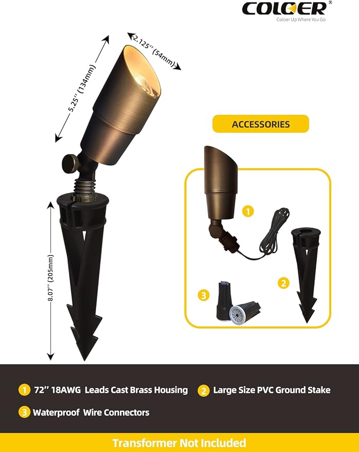 - Lifetime Warranty: The COLOER landscape spotlight uses a design with separate light fixture and bulb, which offers a longer lifespan compared to the non-detachable integrated design. You can replace the bulb without having to replace the entire fixture just because the bulb is broken. We offer a lifetime warranty on the brass light fixture. We stand behind our product with our top-rated customer service. Please don't hesitate to contact us if you have any issues.
