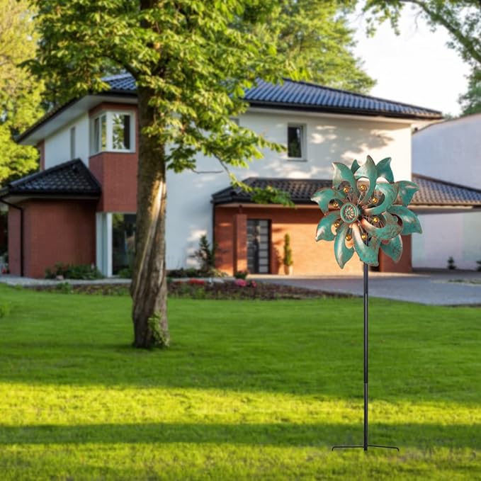 - 【Easy to Assemble】DREAMYSOUL garden metal wind spinner is easy to assemble, no extra wiring. Tighten the parts piece by piece with our instructions, place them in the garden or yard with metal stake, enjoy your garden decorations.