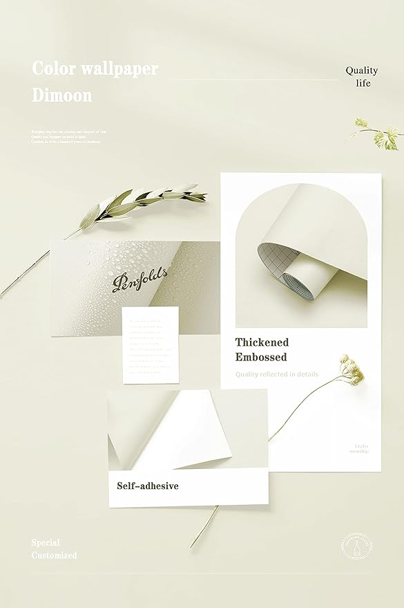 Dimoon 118''x17.7'' White Peel and Stick Wallpaper Contact Paper Modern Self Adhesive Wall Paper Removable Renter Friendly Textured Solid Color Shelf Cabinet Vinyl Roll (118''x17.7'',Cream White)