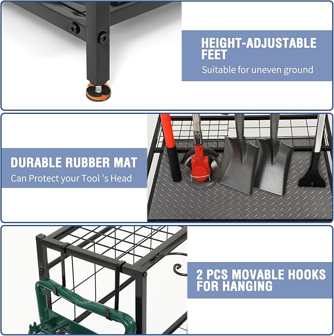 - STRONG DURABLE STEEL CONSTRUCTION: This garage tool rack and shed organizer made of a durable coated steel frame thatโs sturdy enough to withstand indoor or outdoor use. The garage organizer offers long-lasting strength and impressive performance, you will not worry about collapsing like plastic organizer