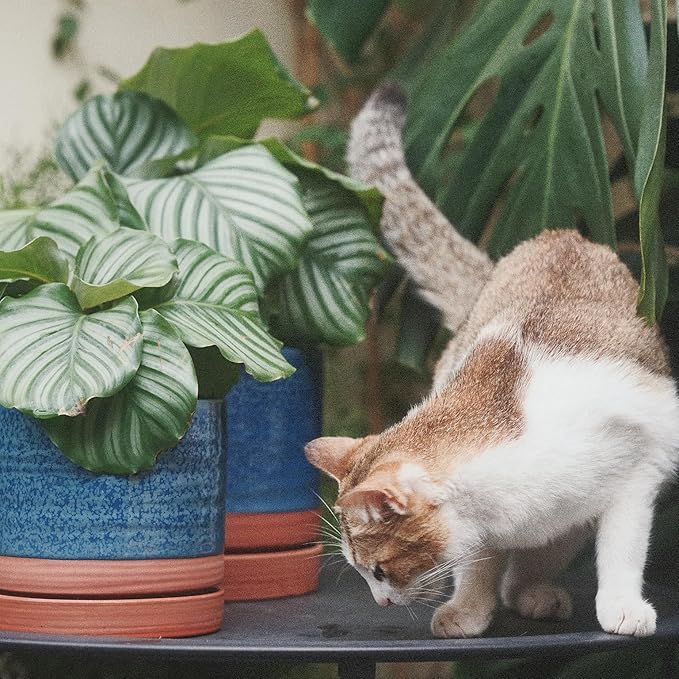- 8 Inch pots for plants indoor: 8" Diameter x 7" H, blue reactive glaze & terracotta red