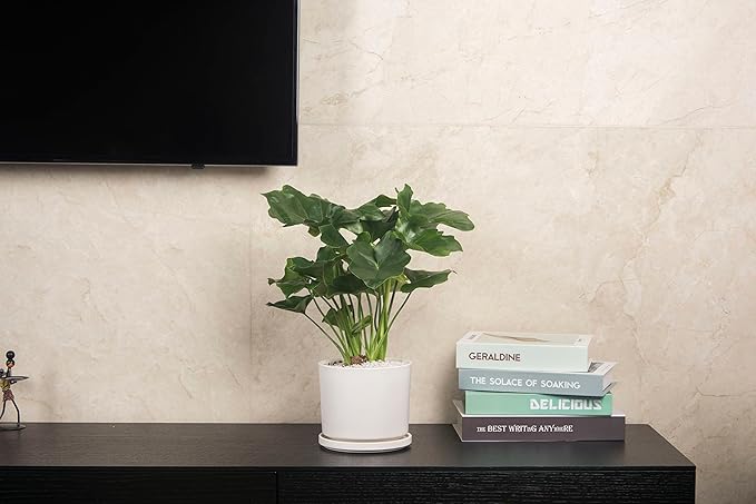 - 【Drain Hole & Saucer Tray】 Comes with a drain hole at the bottom, which can prevents the plant pot from overwatering, promoting plants health, and help them thrive. Saucer base for catching excess water without drips, works well for keep table clean