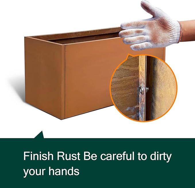 - 【 Corten Steel Planter Box】 Use special weather resistant corten steel, which is characterized by its natural rusting appearance (PS: Be careful to dirty your hands or clothes). This feature can make Steel Planter Box resist any weather. Corten Planters don't need any protection when it is placed outdoors, and long lifetime, it will not be damaged for 50 years.