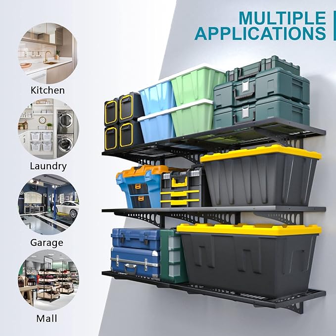- π§ Specifications π¨: The size of a single shelf is 2 x 3ft (24 x 36 inches) and weighs 11 pounds. The heavy-duty powder coated steel garage storage rack provides high-quality hardware for each component. It depends on the load-bearing capacity of the wall and the installation environment. The maximum load-bearing capacity of each shelf is 250 pounds.