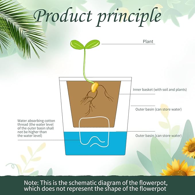 - Water Indicator: this kind of self watering plant pot is designed with water indicator, which means that you can easily control the water line without drowning your plants; You do not have to water your plants every day, this self watering pot for indoor plants can automatically absorb water through cotton rope to keep the soil moist
