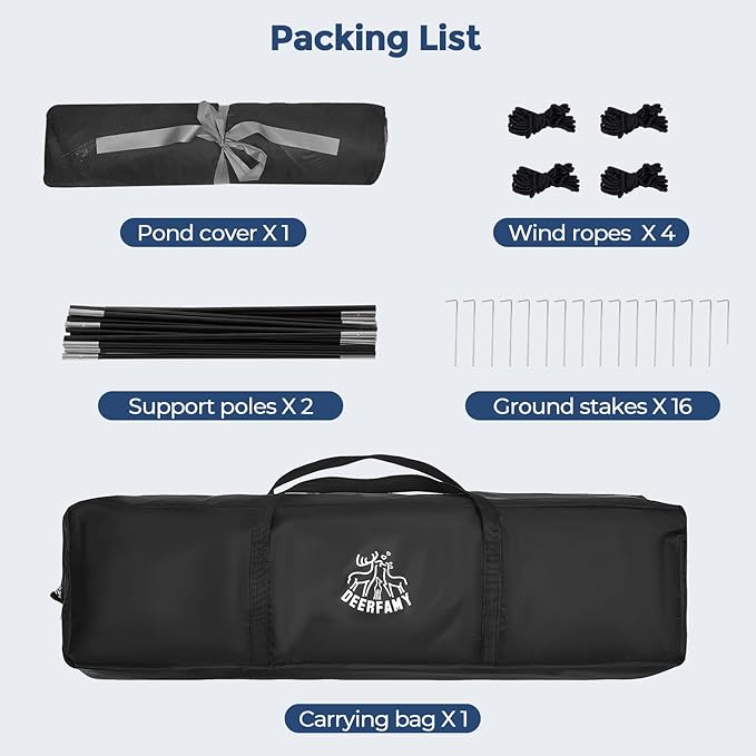 - ๐ฟ๐ช๐ง๐๐๐ก๐ ๐พ๐ค๐ฃ๐จ๐ฉ๐ง๐ช๐๐ฉ๐๐ค๐ฃ: Made of polyester mesh and fiberglass poles, the pond cover is built to last and can stand up to tough weather conditions, without worrying about tearing.
