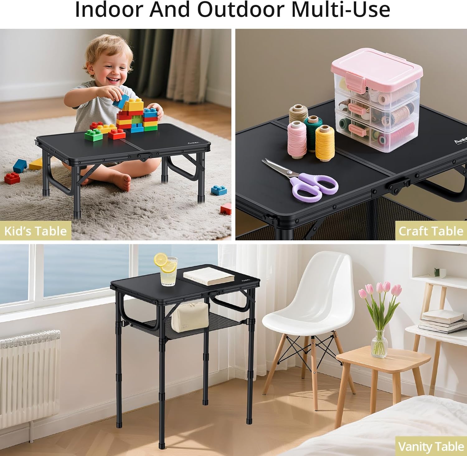 - 3 Height Adjustable: The height of the folding table is adjustable between 9 in, 18 in and 27.5 in. You can adjust the height according to your needs to adapt to different occasions. Bring you the most comfortable experience