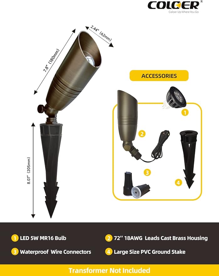 - Lifetime Warranty: The COLOER landscape spotlight uses a design with separate light fixture and bulb, which offers a longer lifespan compared to the non-detachable integrated design.You can replace the bulb without having to replace the entire fixture just because the bulb is broken.We offer a lifetime warranty on the brass light fixture and 5 years for the led bulb. We stand behind our product with our top-rated customer service. Please don't hesitate to contact us if you have any issues.