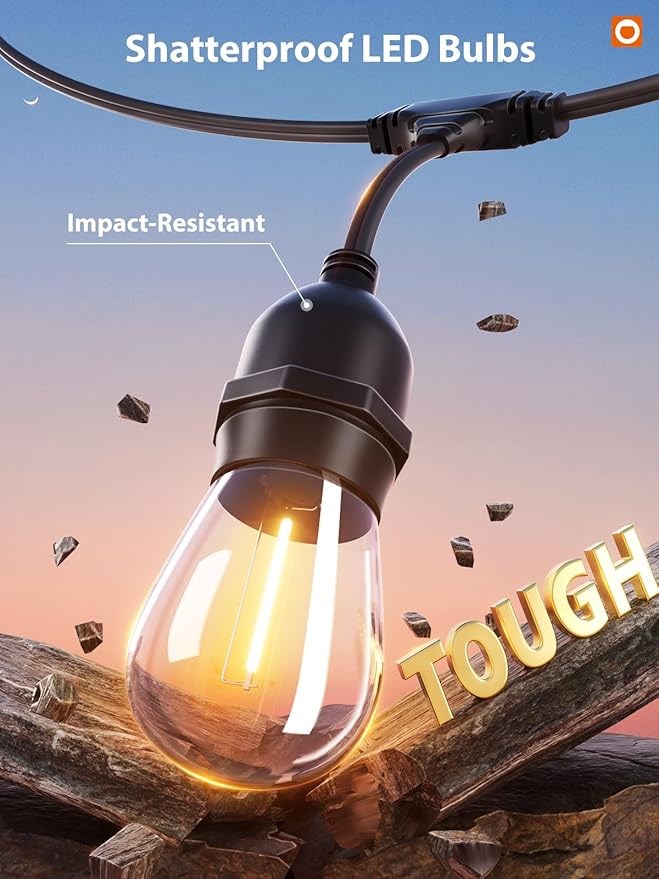 - Breathtaking Italian Bistro Style Lighting : Each strand features 15 vintage-inspired hanging sockets with shatterproof LED edison bulbs, spaced 3.11 feet apart for a captivating, even glow. Enjoy brighter, energy-efficient outdoor lights that enhances every outdoor moment with timeless charm and lower electricity costs.
