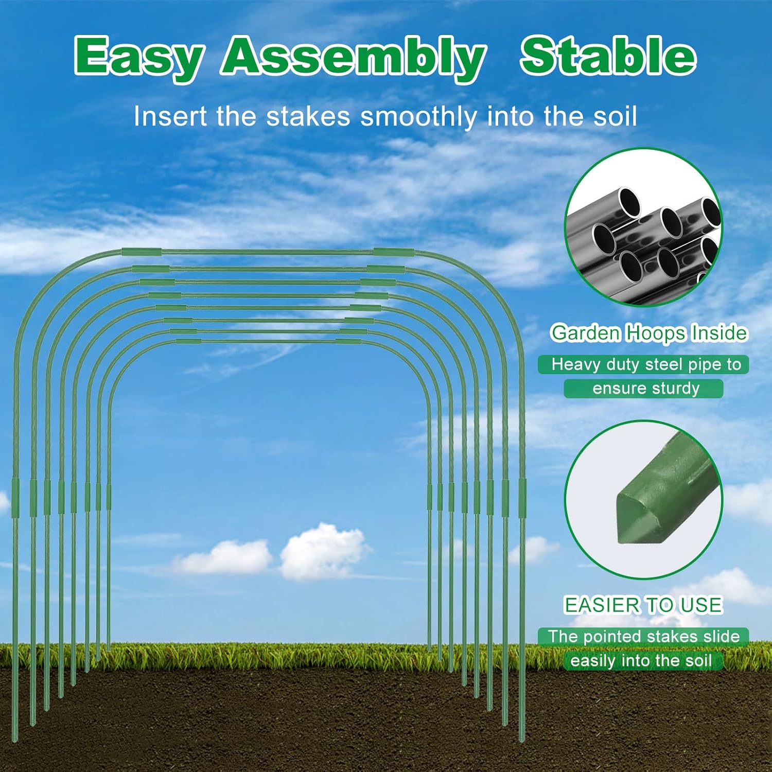 - 🌱【MULTIPLE APPLICATIONS】:Greenhouse Hoops Grow Tunnel is suitable for indoors and outdoors, fit for yard, vegetable garden and raised garden beds. Creates a favorable microclimate for your plants.