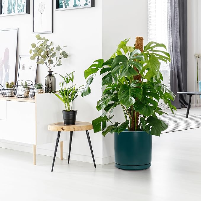 • Simple, elegant, and modern cylindrical straight round planter pot with saucer and drainage hole.