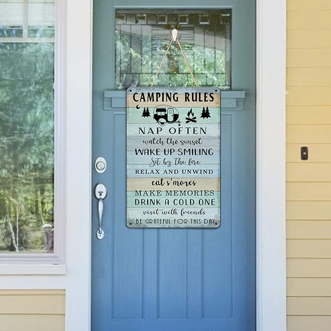 - WIDE RANGE OF APPLICATIOM: These camping rules signs are not really rusty. It is a fun and attractive decoration for your House, Home, Bar, Room, Cabin, Rv, Door or Garage.