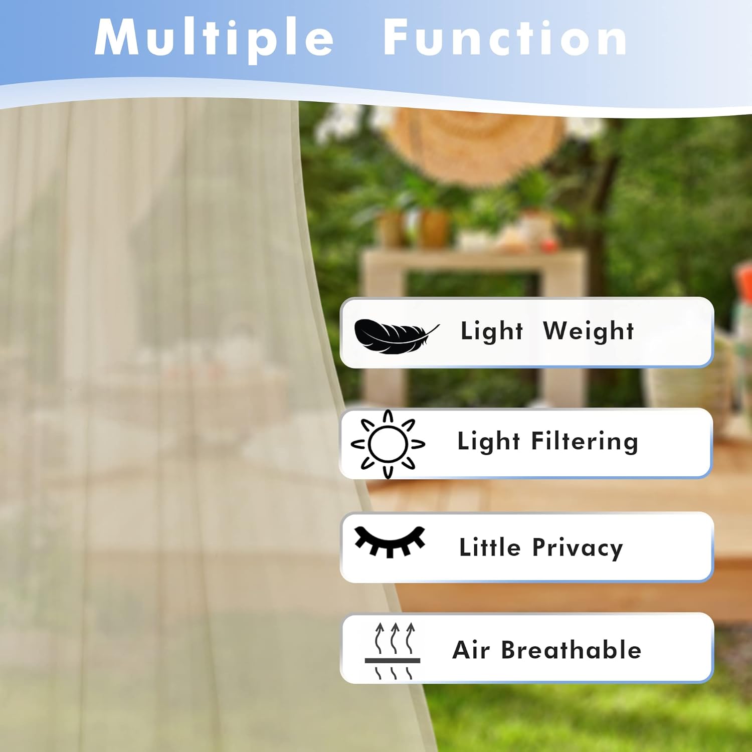 HolidayIdeas Outdoor Sheer Curtains for Patio Waterproof, 4 Panels - 54 x 108 Inch - Light Filtering Voile Outside Curtains Grommet Drapes for Front Porch, Gazebo, Pergola, Backyard, Linen Color