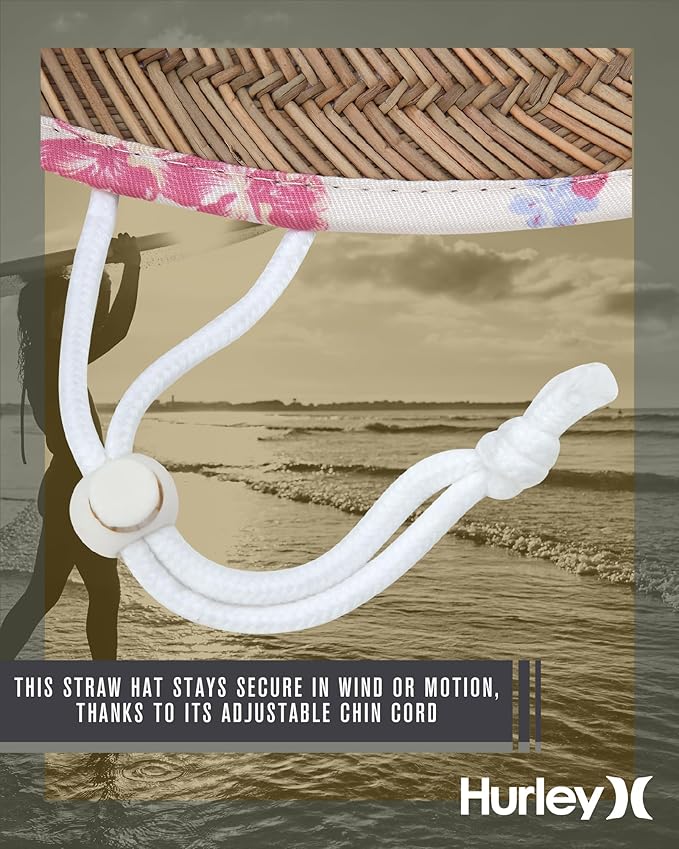 - DESIGN THAT INSPIRES CONFIDENCE: The Hurley Women's Straw Hat combines the perfect balance of beach-chic and sun protection. Its medium brim delivers a flattering silhouette while shielding your face from harmful UV rays. Whether youโre lounging at the shore or strolling through a sun-soaked park, this hat will keep you looking effortlessly stylish. Crafted from real straw, it adds that natural, laid-back vibe that sun hats for women should offer