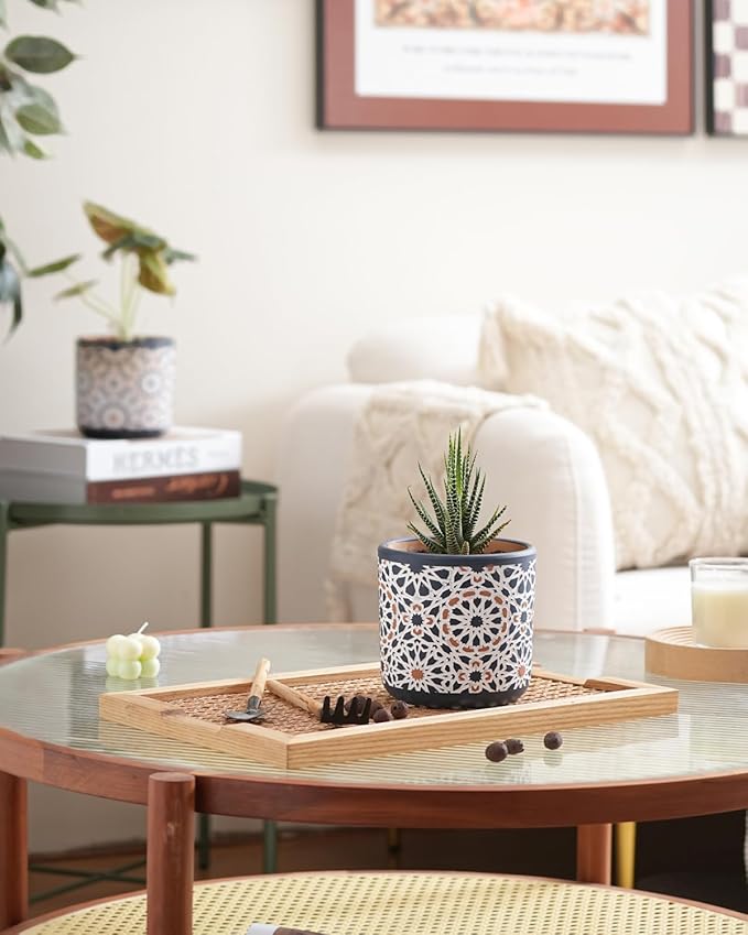- 🪴Moroccan-inspired design: these ceramic indoor planters capture the vibrant essence of the nation. Combining the enigmatic elements of religion and the traditional spirit of African tribes, they also exude a unique romantic ambiance reminiscent of Europe. This one-of-a-kind fusion of cultures creates a truly captivating and harmonious aesthetic.