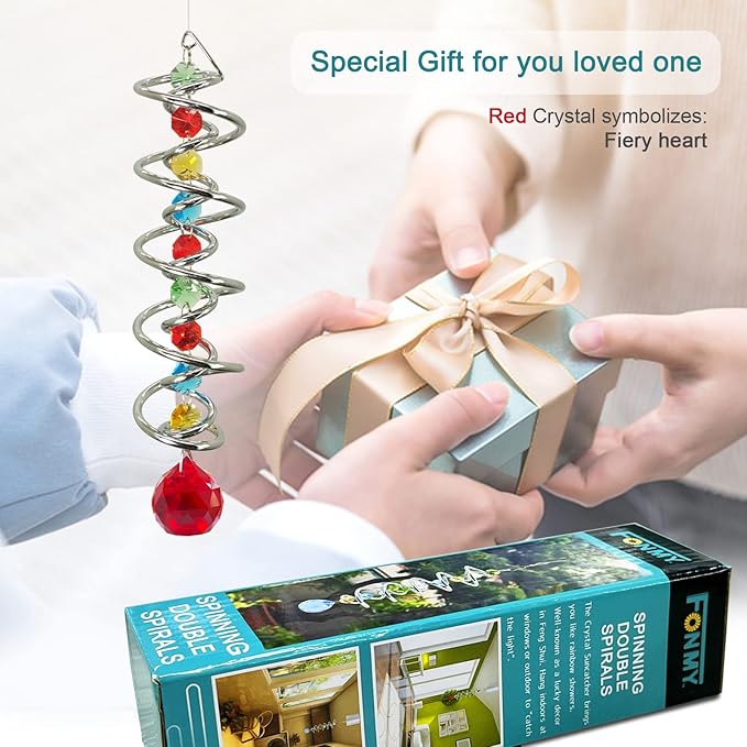 - 【HIGH QUALITY】:Made of stainless steel wire and crystal material, specail double structure spiral tail w/ solid red color K9 crystal glass ball and raibow color chain crystals , promised good weather resistant and amazing decoration. All FONMY crystal ball made of top crystal glass material with finely crafted, high clarity and cast beautiful rainbows, could turn the sun's rays into many rainbows.