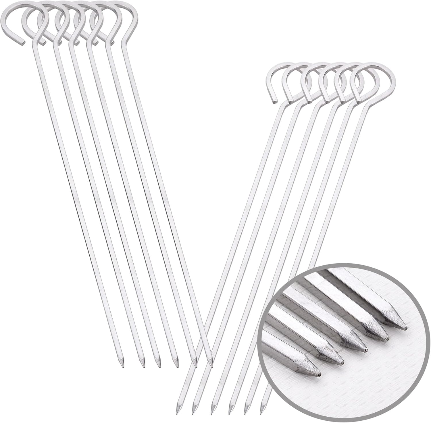 - Ring tip handles allow for easy handling and turning. Sharp pointed end for easily punctures through beef, chicken, fish, mushrooms, bell pepper, and other meats and vegetables with ease;