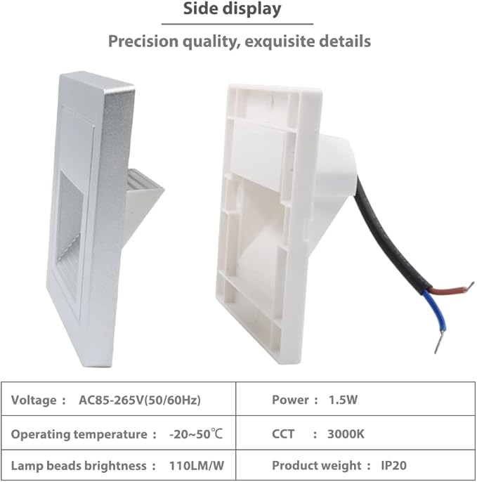- Indoor Stair Light: Sliver shell, warm white 3000K, plastic corner staircase light step light