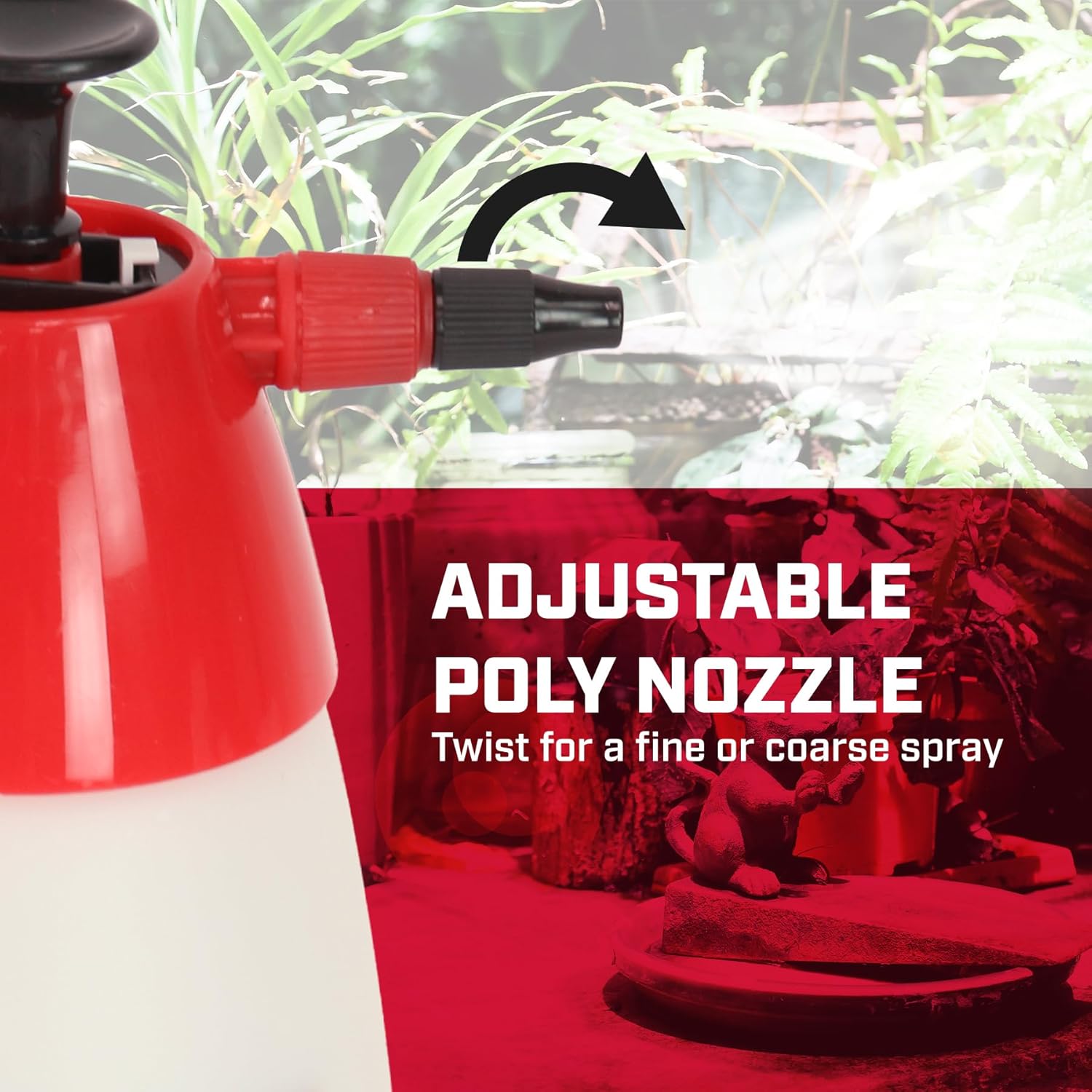 - THE SPECS MAKE IT GREAT: It’s easily to carry and store on shelf, in a closet, tool box, or back of a truck. Comfortably grip the ergonomic handle with gloves and use the thumb-controlled shut-off to control the spray while working. Twist the adjustable poly cone nozzle to spray a stream or shower depending on your application.