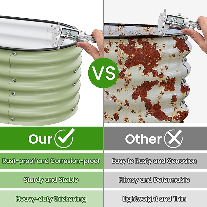 - Safety and Eco Friendly: We use USDA-approved paint that is 100% safe and eco friendly,so you can use our products with peace of mind.Plus,Our garden bed features an oval design that eliminates sharp corners and is covered with heavy-duty rubber edging to prevent injuries.