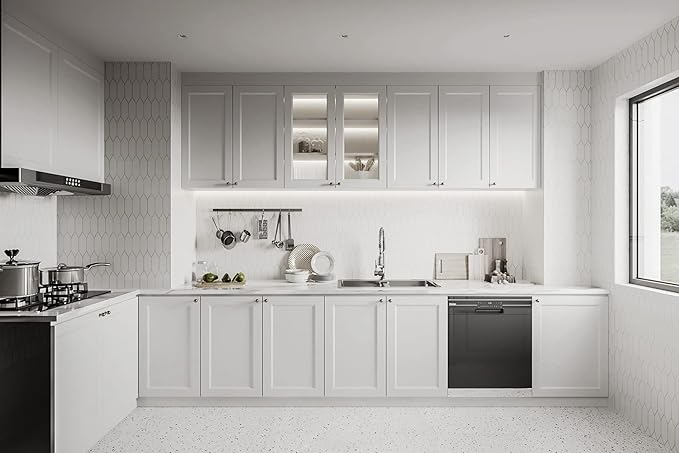 - [SIZE] -L19.68xW1.96ft/236inx23.6in, covers 38.57 sq.ft[COLOR] -White [MATERIAL] -Vinyl [LINES]-Embossed [WATERPROOF]-Easy to clean