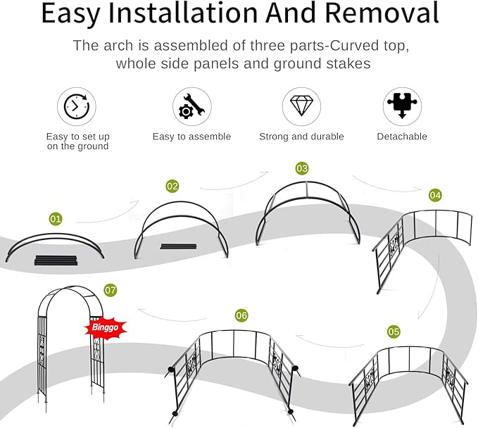 - [Multifunctional]: Our arch can be used as a path way which adds interest to your garden and can also be used as a wedding arch or any other outdoor ceremonies.