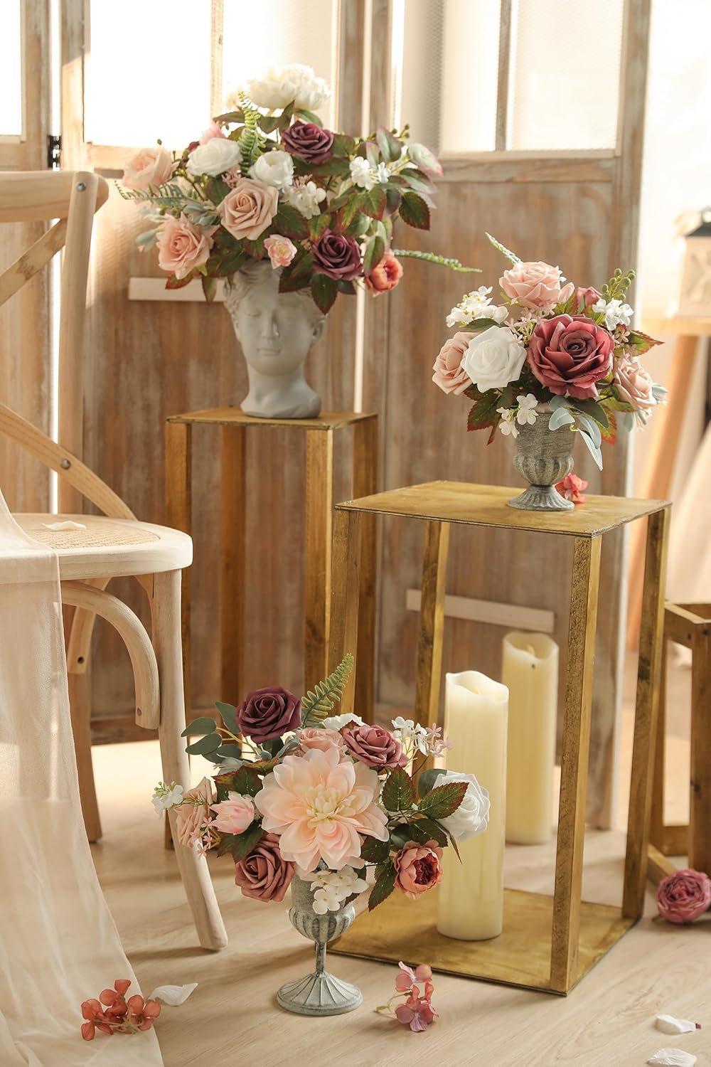 Artificial Flowers Box Set Dusty Roses Fake Silk Flowers Pink Fake Roses DIY Wedding Bridal Bouquets Baby Shower Cake Flowers Home Decoration