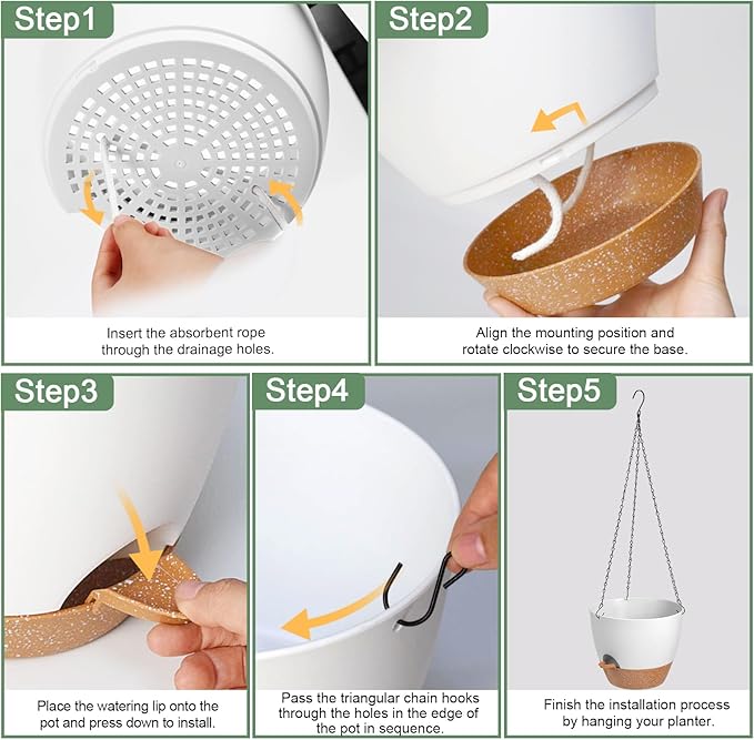 - Water Reservoir with Removable Tray - Water storage up to 7-14 days. Our hanging plant pots come equipped with a removable tray that doubles as a water reservoir, ensuring your plants are watered for up to two weeks while you are away.