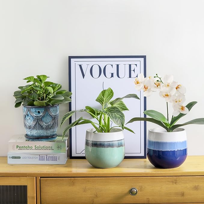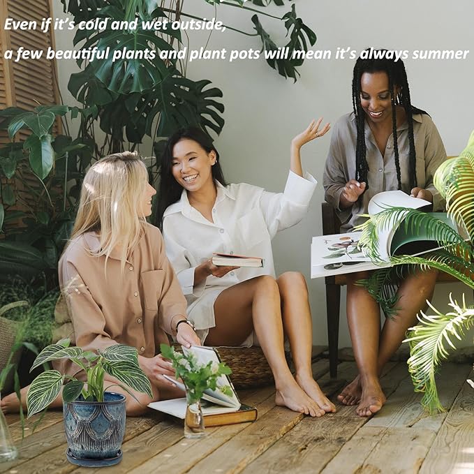 - ๐๐ฒ๐ฐ๐ผ๐ฟ๐ฎ๐๐ถ๐๐ฒ ๐ฝ๐น๐ฎ๐ป๐ ๐ฝ๐ผ๐๐โThe Reactive Glaze Blue flower pots feature its special stylish appearance, perfect for decorating your home, living room, windowsill, office, desktop, courtyard, patio, etc. The planters for indoor plants are exclusive designs that adds a touch of elegance to any room, with colors that match any decorative style.