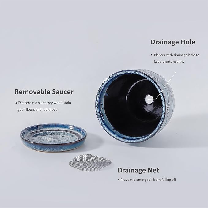 - ๐ฃ๐น๐ฎ๐ป๐๐ฒ๐ฟ ๐๐ถ๐๐ต ๐ฑ๐ฟ๐ฎ๐ถ๐ป๐ฎ๐ด ๐ต๐ผ๐น๐ฒ & ๐ฆ๐ฎ๐๐ฐ๐ฒ๐ฟโThe plant pots with drainage Hole ensure your plants stay healthy. No more worrying about overwatering or root rot. Provide pot-fitting trays to store excess water and provide plants with constant moisture. The ceramic plant tray won't stain your floors and tabletops. It is an ideal planter for indoor plants.